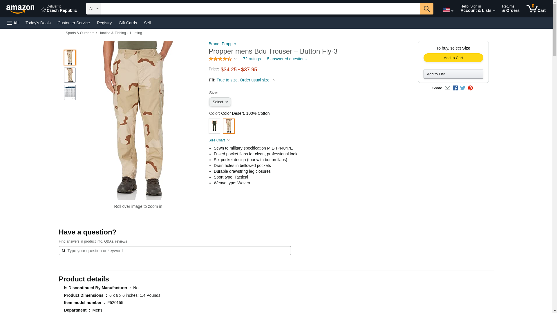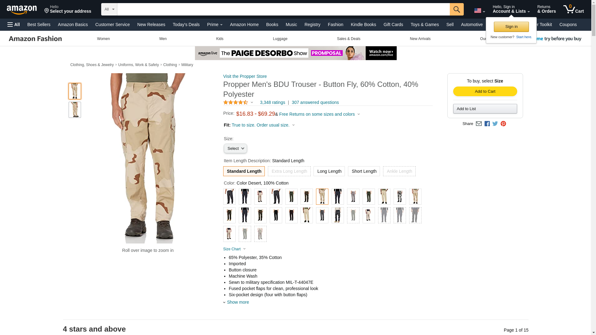 Propper BDU Trouser Button Fly Regular Length Inseam 29.5-32.5 3-Color Desert 3XL2