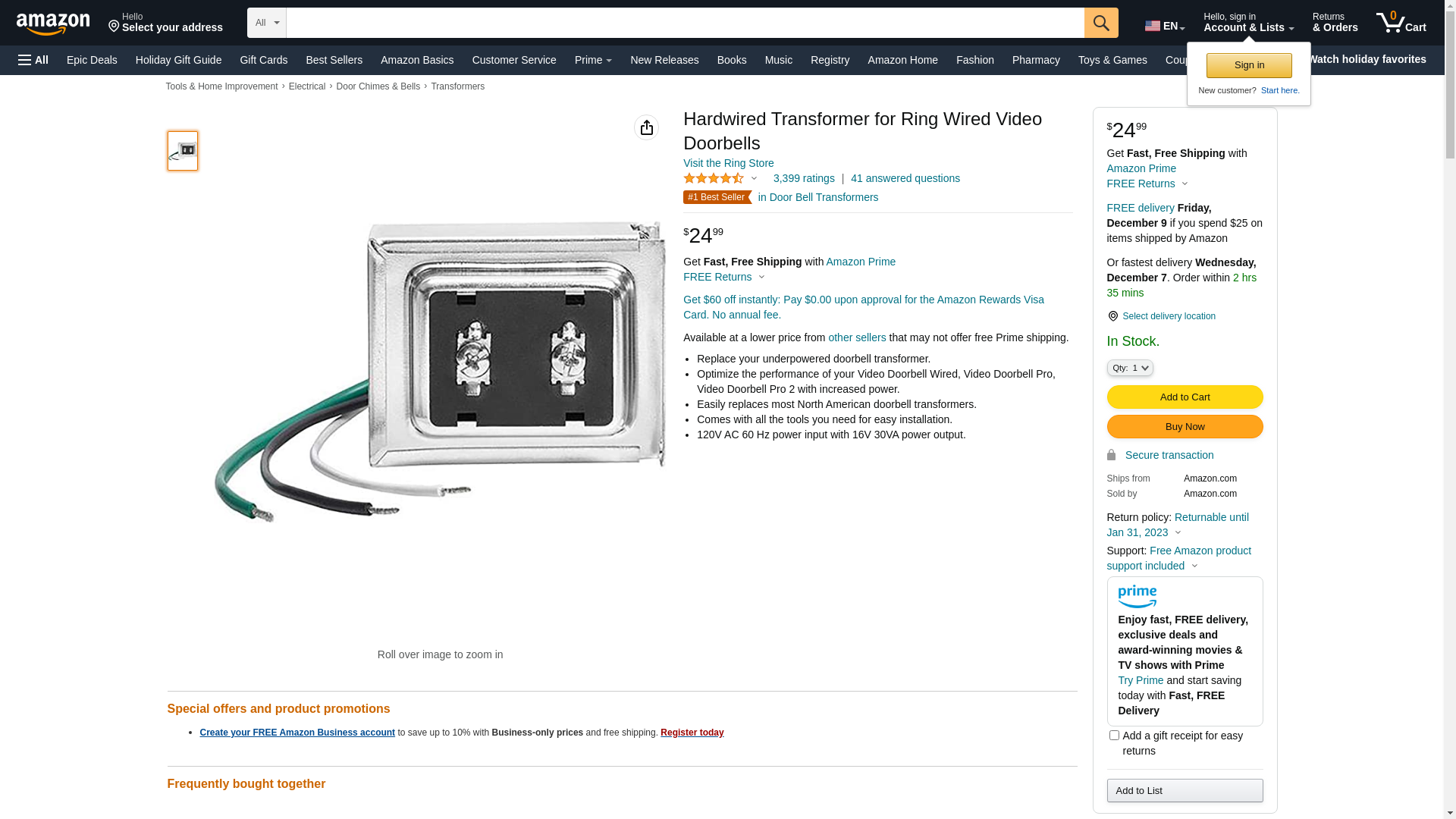 Hardwired Transformer for Ring Video Doorbell Pro: Maxedbuy.com