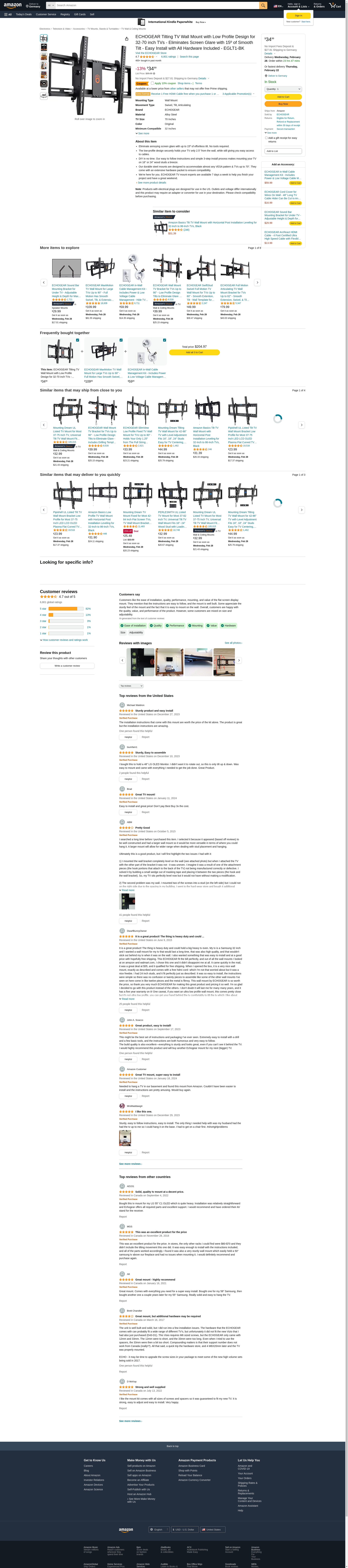 ECHOGEAR Tilting TV Wall Mount with Low Profile Design for 32-70 inch TVs - Eliminates Screen Glare with 15 Degrees of Smooth Tilt - Easy Install with All Hardware Included - EGLT1-BK: Maxedbuy.com