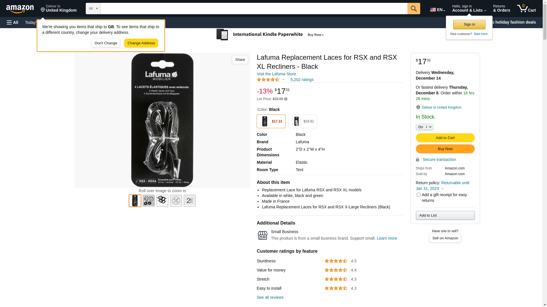 Lafuma Replacement Laces for RSX and RSX XL Recliners - Black: Maxedbuy.com