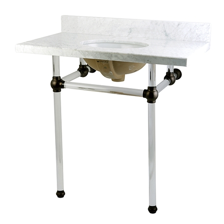 Kingston Brass KVPB36MA5 Templeton Console Sink, 36" L x 22" W x 12-1/4" D, Carrara Marble/Oil Rubbed Bronze