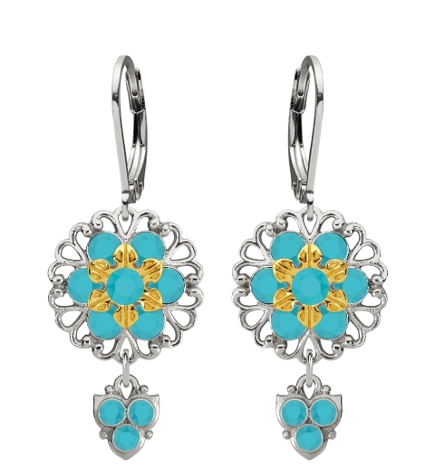Lucia Costin Sterling Silver, Turquoise Swarovski Crystal Earrings, Twisted Accents