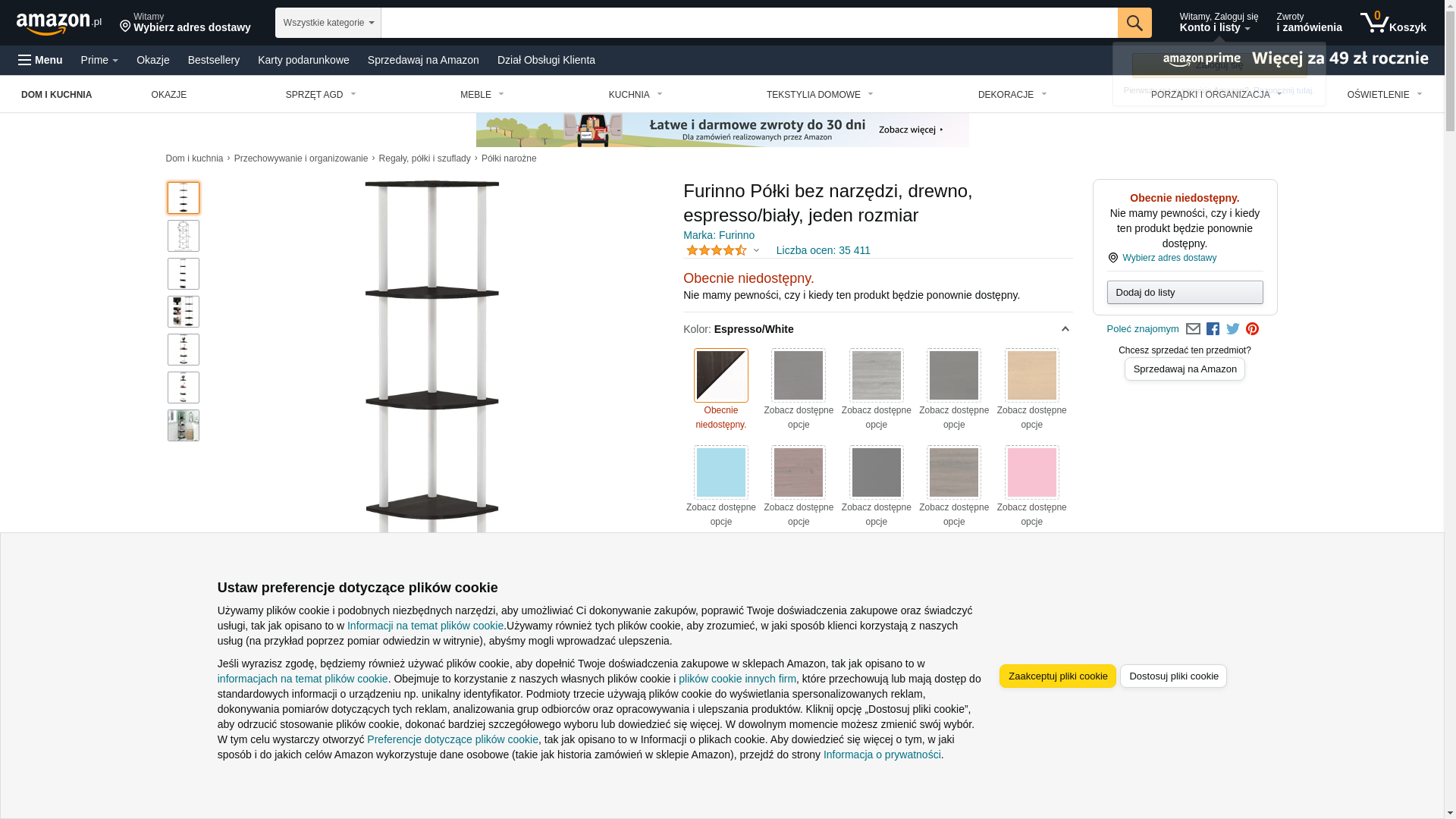 Furinno Turn-N-Tube 5 Tier Corner Display Rack Multipurpose Shelving Unit, Espresso & White - 57.7 x 11.6 x 11.6 in.