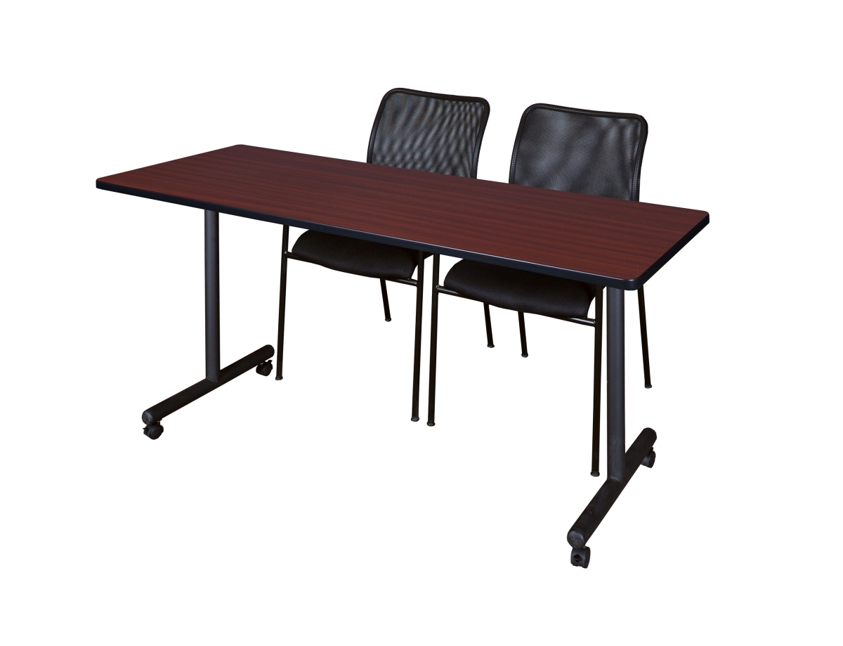 Regency Kobe Mobile Training Table Set with 2 Mario Chairs, 66" x 24", Mahogany