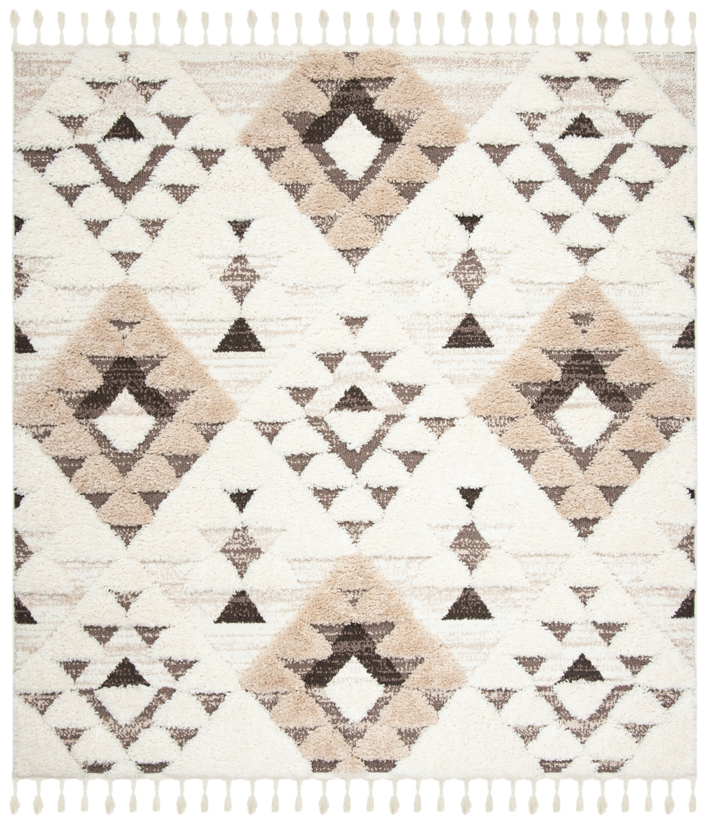 Safavieh MTS688A-4SQ 4 x 4 ft. Moroccan Tassel Shag Contemporary Square Power Loomed Rug, Ivory & Brown