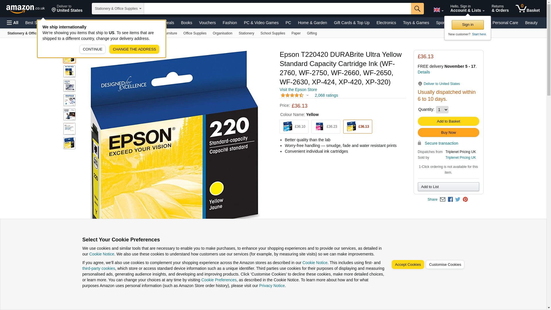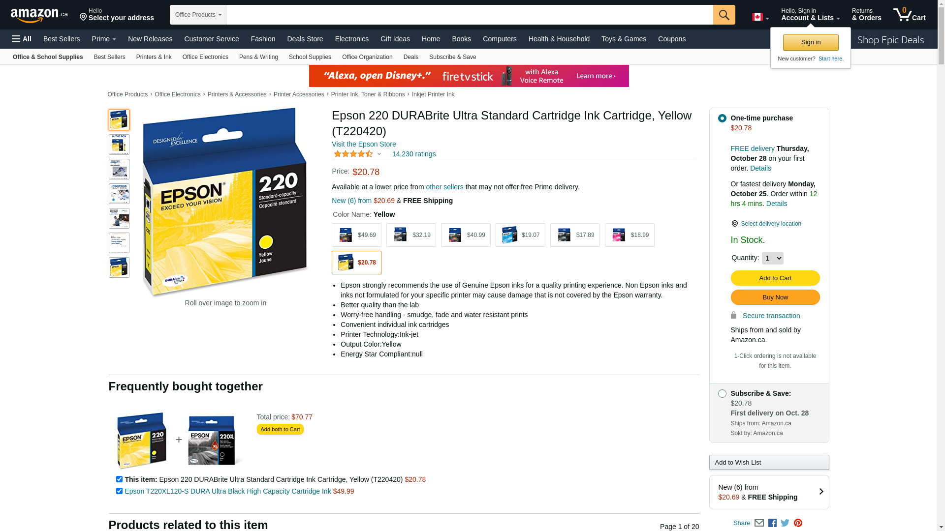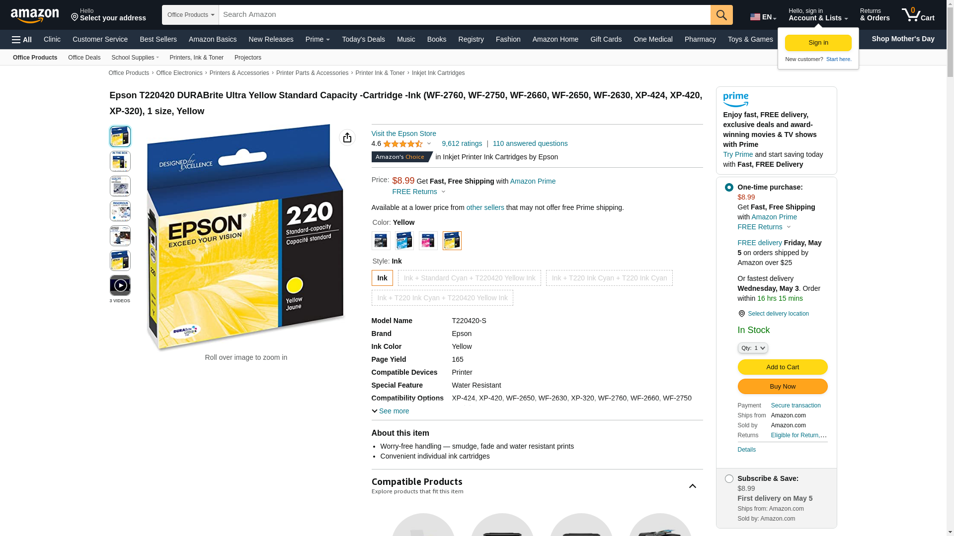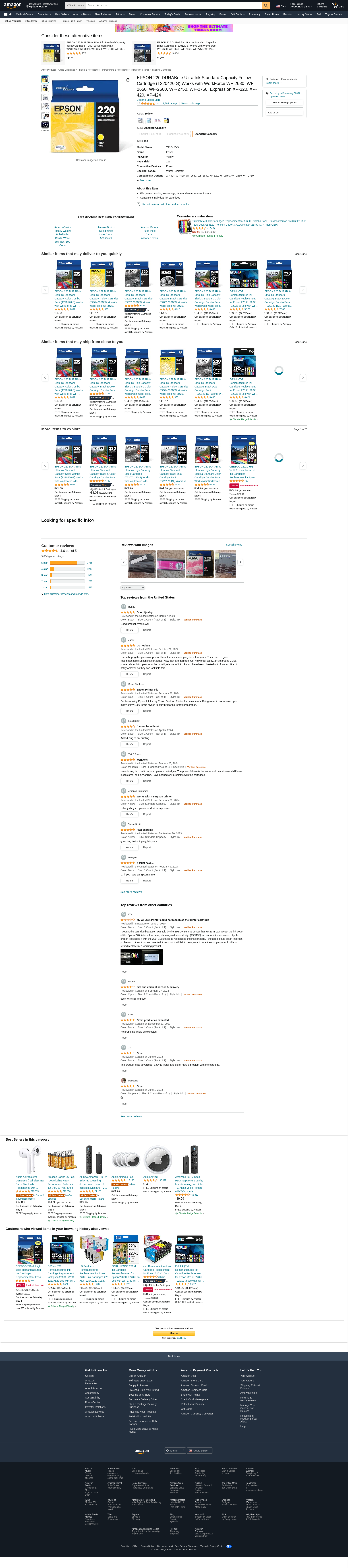 EPSON 220 DURABrite Ultra Ink Standard Capacity Yellow Cartridge (T220420-S) Works with WorkForce WF-2630, WF-2650, WF-2660, WF-2750, WF-2760, Expression XP-320, XP-420, XP-424
