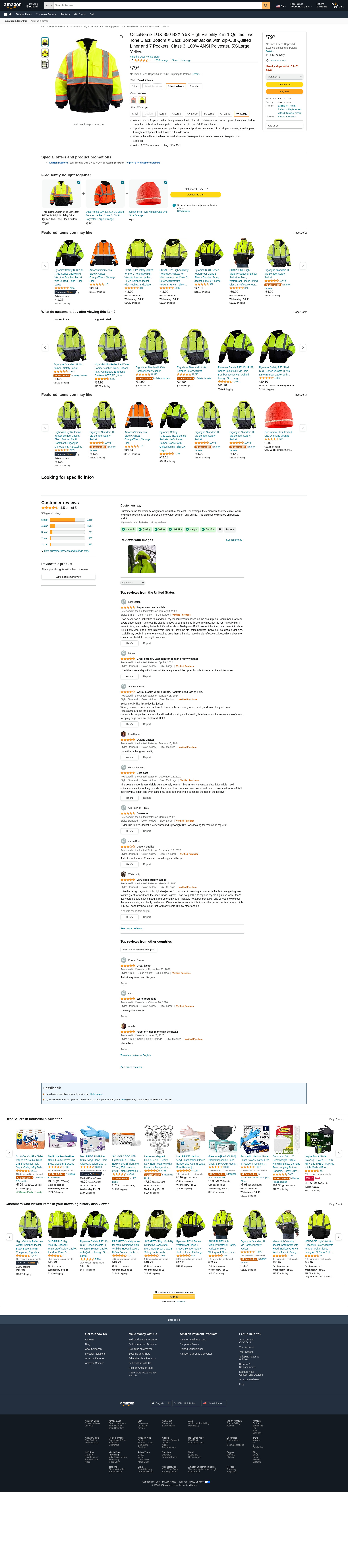 | Feature | Occunomix LUX-350-B2X Black Bottom 2-in-1 X Back Bomber Jacket 5X Yellow |