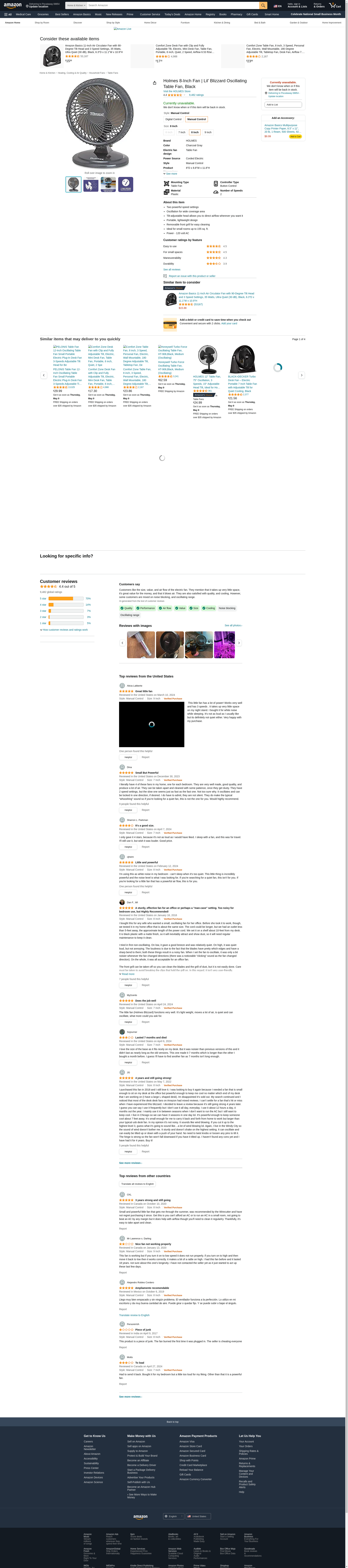Holmes 8-Inch Fan | Lil’ Blizzard Oscillating Table Fan, Black