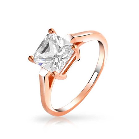 Bling Jewelry Rose Gold Plated Silver Square CZ Solitaire Engagement Ring