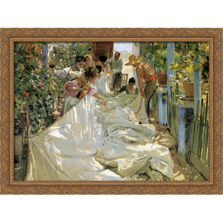 Mending the Sail 36x28 Large Gold Ornate Wood Framed Canvas Art by Joaquin Sorolla