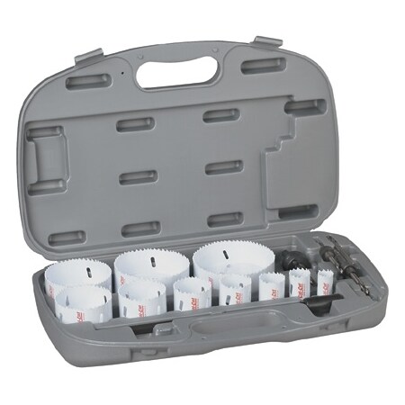 HSS Bi metal hole saw kit comes in plastic case and contains the most popular hole saws used by electrician's, plumbers, industrial and general maintenance personnel. Bi-Metal Hole Saws, Supports heavy duty cutting with its rugged constitution, which is constructed on tough metal. It needs just one pass to cut through studs. It cuts faster, smoother without as much vibration as the others due to its variable pitch teeth. Hole saws included are: 3/4", 7/8", 1", 1-1/4, 1-3/8, 1-1/2, 1-3/4, 2, 2-1/4, 2-1/2, and 3