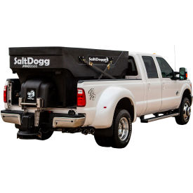 Fits trucks with minimum 13,000 lb GVW (gross vehicle weight). Double wall poly hopper has a 2.5 cubic yard capacity. 12V DC-powered electric drive independent 3/4 HP chain motor, and 1/2 HP spinner motor. Handles bulk salt, bulk sand, or a 50/50 sand/salt mix. In-cab closed-loop controller with independent conveyor and spinner speeds, and vibrator control. A high-flow design for consistent coverage at high speeds, with a 5-30 ft spread radius (14 in. poly spinner). "Swing away" chute for bulk unloading. Vibrator, top screen, fitted tarp, and tie downs included. Forklift slots for ease of loading. Backed with a 2 year warranty. Made in the USA. The SaltDogg PRO2500 Electric Poly Hopper Spreader with Conveyor Chain is designed for serious commercial and municipal users*. The spreader fits flatbeds, dump trucks, and large pickups (dual rear wheels with 8 ft beds and a minimum 13,000 lb GVW). It features a patented 2.5 cubic yard double-wall poly hopper that won't rust or dent. The spreader can handle salt, sand, or a 50/50 salt/sand mix with its 12 in. wide all-steel pintle chain conveyor and stainless steel trough. The conveyor is driven by an independent 3/4 HP, 12V gear motor. A 200 lb vibrator works with the stainless steel inverted V to keep your material flowing. High-flow design allows for consistent material coverage even at high speeds, and the chute can be adjusted to suit different materials. It also swings away to make bulk unloading easy. Intuitive in-cab controls let you independently manage conveyor and spinner speeds and turn the vibrator on/off with the flick of a switch.The spreader comes standard with a top screen, tie downs, and a fitted tarp.