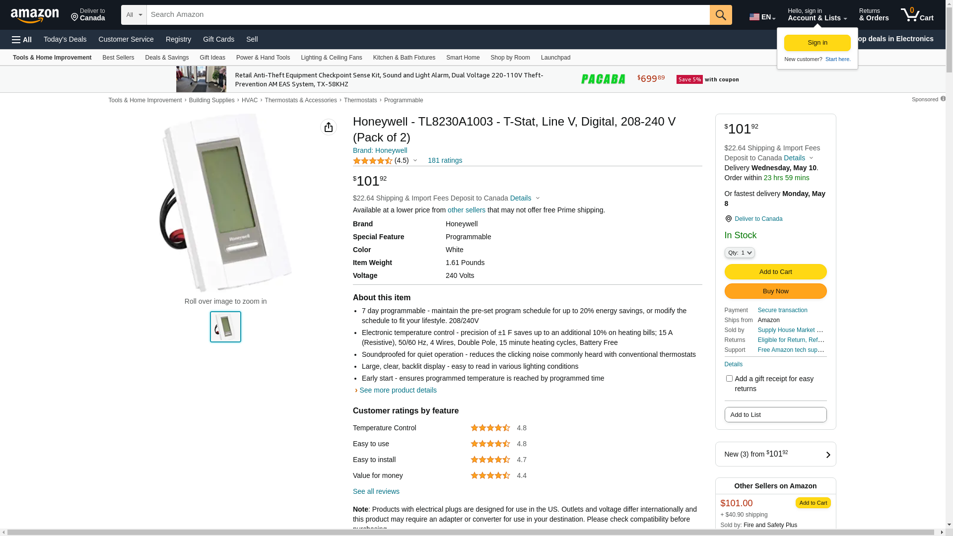 Buy Honeywell TL8230A1003 Today. Check the Honeywell LineVoltPro Programmable Electric Heat Digital Thermostat ratings before checking out.