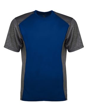 Badger B93385752 Line Embossed Colorblock T-Shirt, Royal & Graphite Line - Extra Small