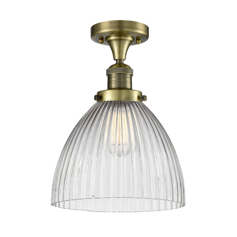 Innovations 517-1CH-AB-G222 Seneca Falls 1 Light Semi-Flush Mount Part of The Franklin Restoration Collection, Antique Brass