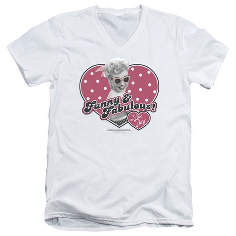 Trevco Lucy-Funny & Fabulous-Womens White S-S Tee-Xl Short Sleeve Adult V-Neck 30-1 Tee, White - 2X