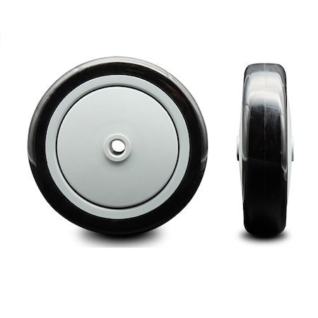 Listing is for one (1) Service Caster 5" diameter by 1.25" tread width black polyurethane on gray polyolefin wheel with precision ball bearing and 3/8" bore. Supports 350 pounds (lbs) per wheel.When searching for a reliable and durable solution for replacement wheels that are non-marking, smooth rolling, and quiet, consider Service Caster’s Polyurethane on Polyolefin core wheel. With a ball bearing with 3/8" bore for axle, Polyurethane is highly resistant to oil, grease, water, and most solvents. Non-marking polyurethane tread mechanically bonded to polyolefin core. Hardness scale 55 +/- 5 Shore (D) Durometer. An excellent choice for clean environments. Service Caster is unsurpassed in quality, reliability, and excellent customer service. Count on us to move you forward.
