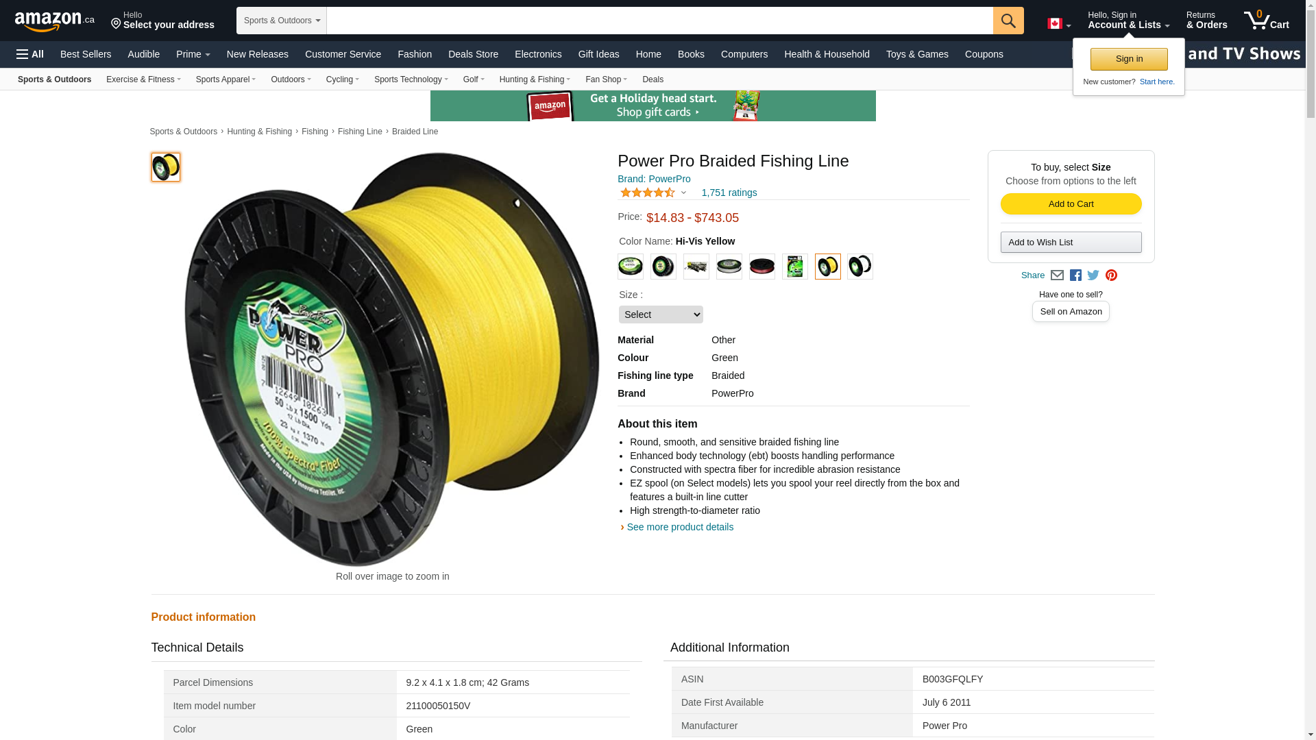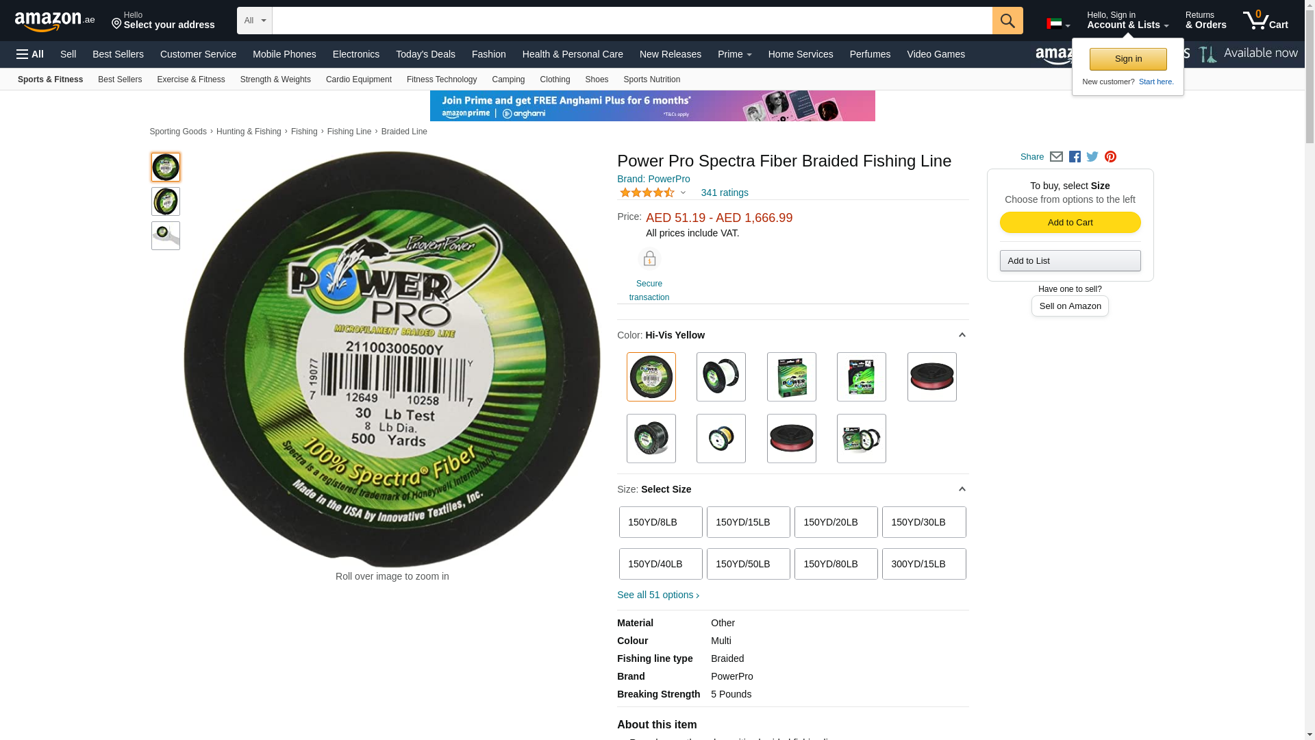 POWER PRO Spectra Fiber Braided Fishing Line, Hi-Vis Yellow, 500YD/80LB