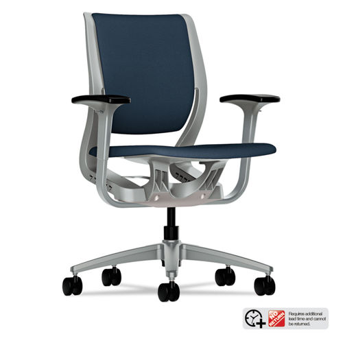 HON Purpose Mid-Back Chair with YouFit Flex Motion, Adjustable Arms, Platinum Shell and Platinum Base, Cerulean Fabric