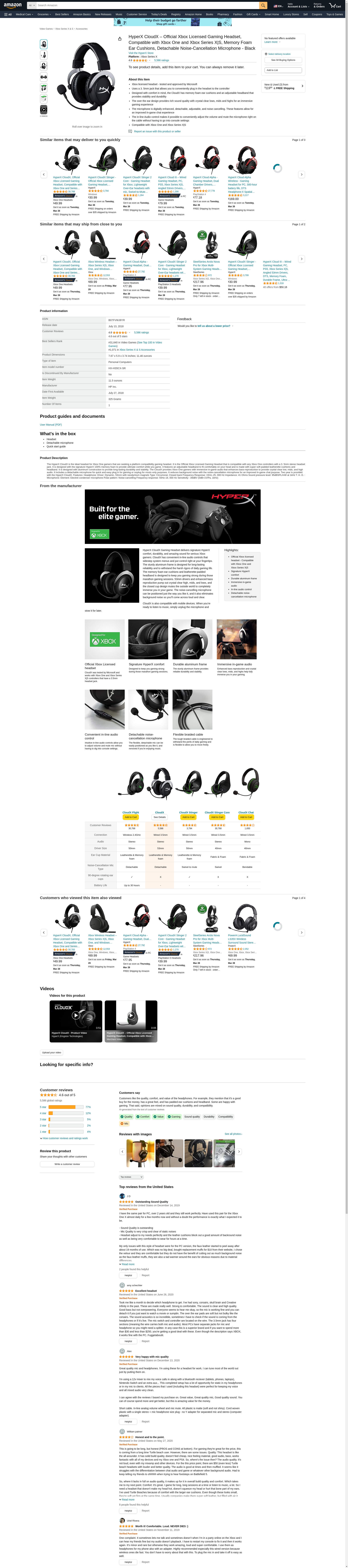 HyperX CloudX – Official Xbox Licensed Gaming Headset, Compatible with Xbox One and Xbox Series X|S, Memory Foam Ear Cushions, Detachable Noise-Cancellation Microphone - Black
