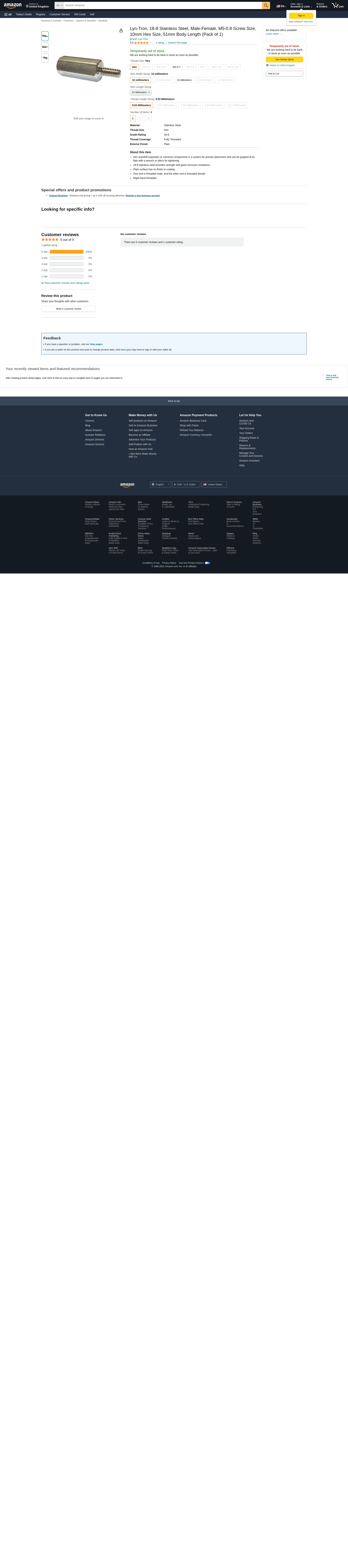 Lyn-Tron, 18-8 Stainless Steel, Male-Female, M8-1.25 Screw Size, 13mm Hex Size, 27mm Body Length (Pack of 5)