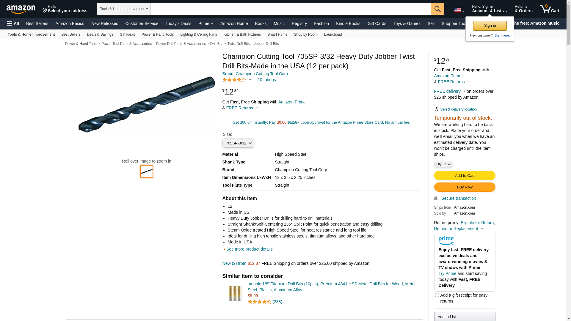 Champion Cutting Tool 705SP-3/32 Heavy Duty Jobber Twist Drill Bits-Made in the USA (12 per pack)