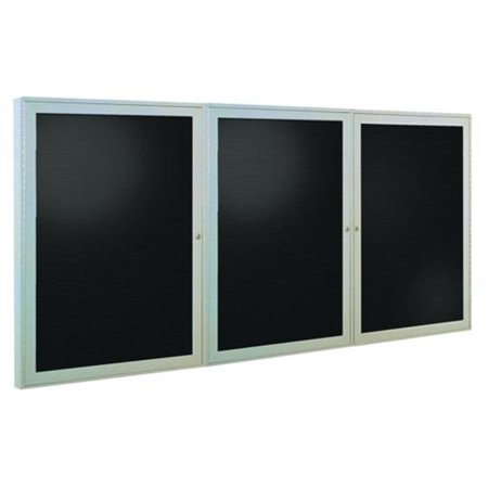 36"x72" 3-Door Satin Aluminum Frame Enclosed Flannel Letter Board, Black
