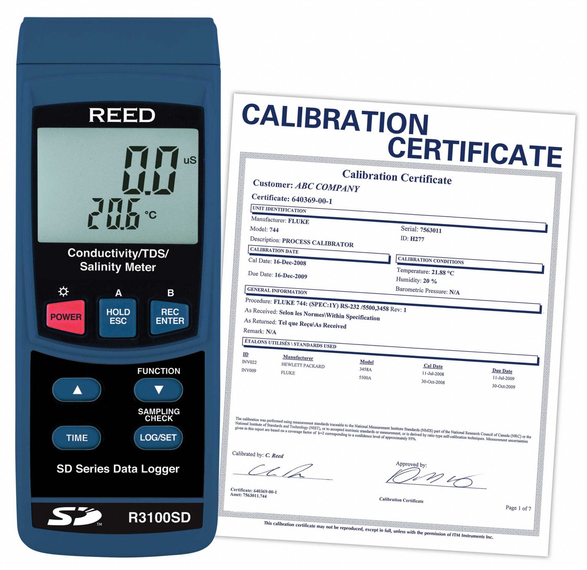 REED Instruments R3100SD-NIST Data Logging Conductivity/TDS/Salinity Meter,