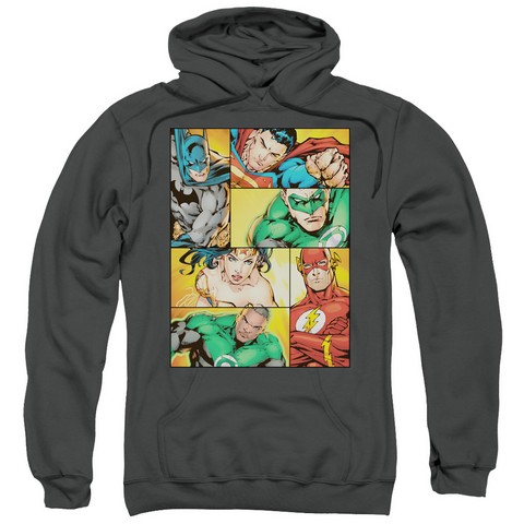 Trevco Jla-Hero Boxes Adult Pull-Over Hoodie, Charcoal - Medium
