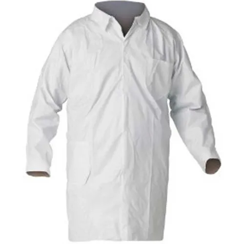 KeyGuard® Lab Coat, No Pockets, Open Wrists, Snap Front, Single Collar, White, XL, 30/Case