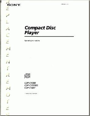 As an Amazon Associate, we earn from qualifying purchases. Buy SONY CDPCX300OM CDPCX300 CDPCX333ES CDPCX691 Audio/Video Receiver Audio/Video SONY . CDPCX300OM Gallery Attributes Brand name, Manufacturer name, ManufacturerSONY ConditionNEW Extra Product NameBuy SONY CDPCX300OM CDPCX300 CDPCX333ES CDPCX691 Audio/Video Receiver Audio/Video extendedQty, qtyInStock0 moq, multiple, tierMinQty11 MPNCDPCX300OM qtySourceBlockString SKU36517 snippetSONY CDPCX300OM audio/video receiver operating manual for CDPCX300, CDPCX333ES, CDPCX691 Audio/Video Receiver models tierPrice118.88 Distributor offers SellerSKUMOQIn stockMultiplePrices replacementremotes.com36517111 @ $18.88