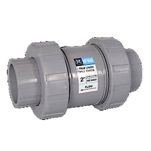 Hayward TC10050ST Series TC True Union Ball Check Valve, Socket/Threaded End, PVC with FPM Seals, 1/2" Size