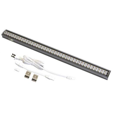 ' LED Cove Light Fixture, Housing Material Extruded Aluminum, Housing Color Aluminum, White Light Color, Color Temp. 3000K, CRI 85, Length 19 In., Width 1-1/2 In., Height 1 In., Lumens 524, 73.7 Lumens Per Watt, 7.1 Watts, Voltage 120VAC, Non-Dimmable, Interconnection Capability Yes, Includes Plug In Cord, Mounting Hardware, Link Cable and Butt Connector, Connection Plug-In or Hard Wired, Features Cove light with 450 and 150 mounting brackets, Cord Length 5' With Plug, Switch Style Rocker '