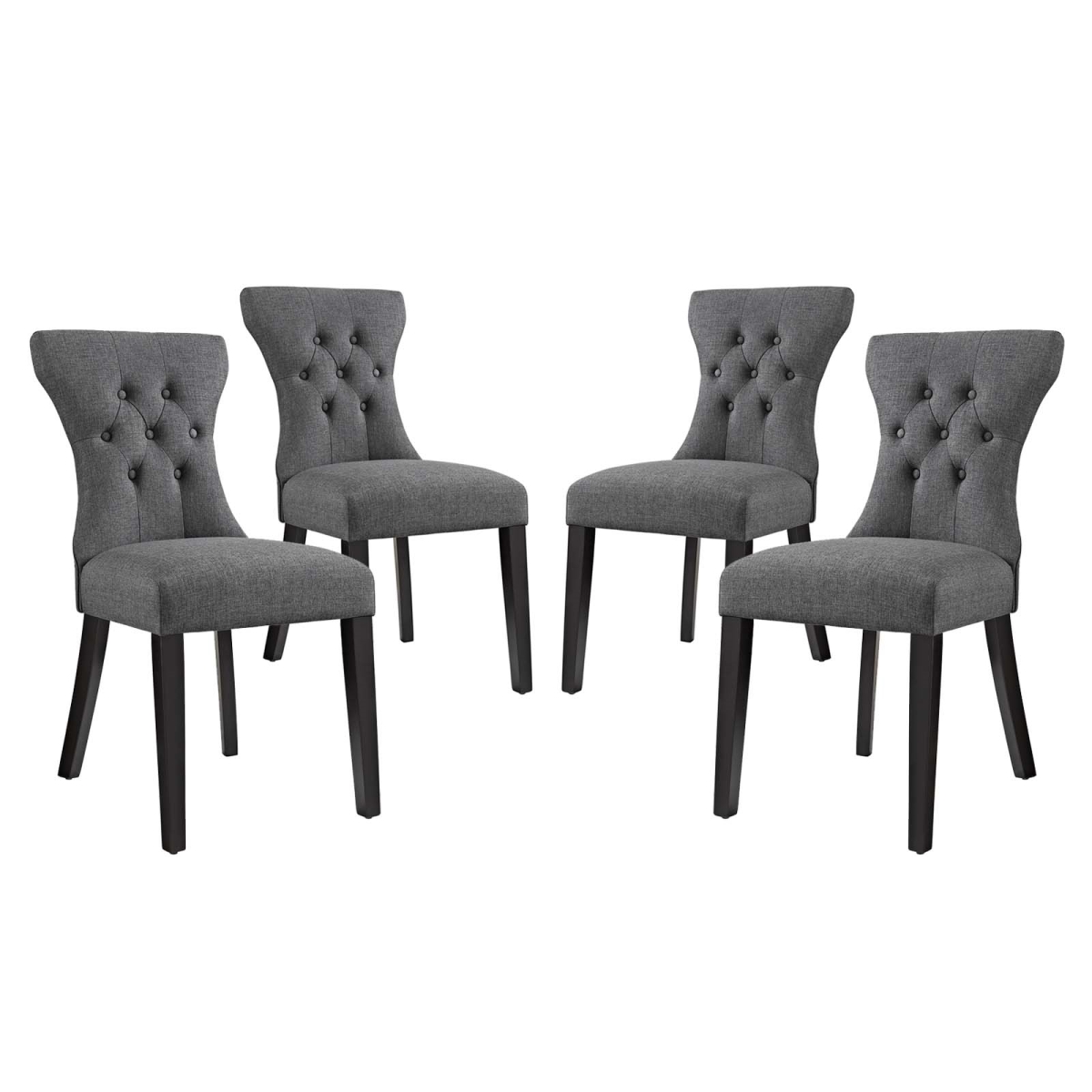 Silhouette Collection EEI-3328-GRY Set of 4 Dining Side Chairs with Dense Foam Padding, Tapered Legs, Modern Style, Solid Rubberwood Frame and Polyester Upholstery in Grey Color