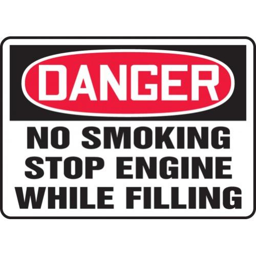 DANGER NO SMOKING STOP ENGINE WHILE FILLING 10" x 14" Adhesive Vinyl Sign