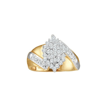 <p><span style="font-size:16px;"><b><u>Description</u></b><br /></span></p> <p><span style="font-size: 14px;">14kt Yellow Gold Womens Round Diamond Cluster Ring 1/2 Cttw</span></p> <br /> <p><span style="font-size:16px"><u><b>Gemstone Details</b></u></span></p> <p><span style="font-size:14px">1/2 Carats total weight<br /><br />All diamonds are natural and conflict-free in origin<br /><br /><b>Round Diamond</b><br /></span></p> <li>1/2 ct.t.w.</li> <li>I3 clarity</li> <li>J-K color</li> <li>Cluster setting<br /><p><span style="font-size:16px"><u><b>Specifications</b></u><br /></span></p><p><span style="font-size:14px">14kt Yellow Gold<br />5.22 grams (approximately)<br />Ring size selectable</span></p><p><span style="font-size:11px">Combined diamond weight of 1/2 carats total weight represents a range of 0.46 - 0.58 cts. t.w.</span></p></li>