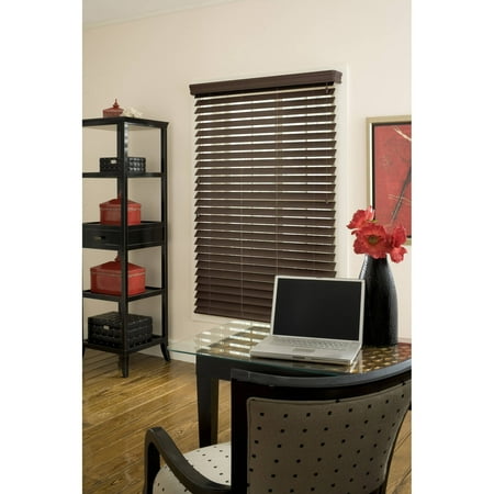 <br /> <b>Richfield Studio 2.5" Faux Wood Blind, Espresso, 48" Length:</b> <ul> <li>PVC material</li> <li>3" decorative crown valance</li> <li>2.5" faux wood slats</li> <li>Offers complete privacy when closed</li> <li>Moisture- and heat-resistant</li> <li>Child-safe breakaway cord consolidator</li> <li>Wipe clean with soft cloth and mild detergent</li> <li>Includes all mounting hardware and instructions</li> <li>1/2" deduction will be taken from the width to allow a proper fit inside the window</li> </ul>