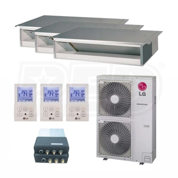 LG L3L36D09091800 Concealed Duct 3-Zone RED° Heat System - 36,000 BTU Outdoor - 9k + 9k + 18k Indoor - 19.0 SEER2