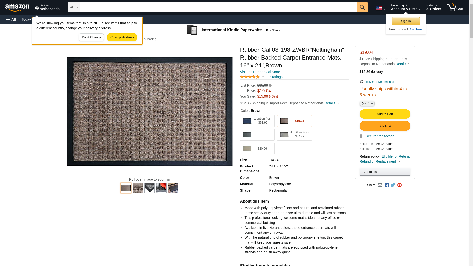 Rubber-Cal 03-198-ZWBR"Nottingham" Rubber Backed Carpet Entrance Mats, 16" x 24",Brown