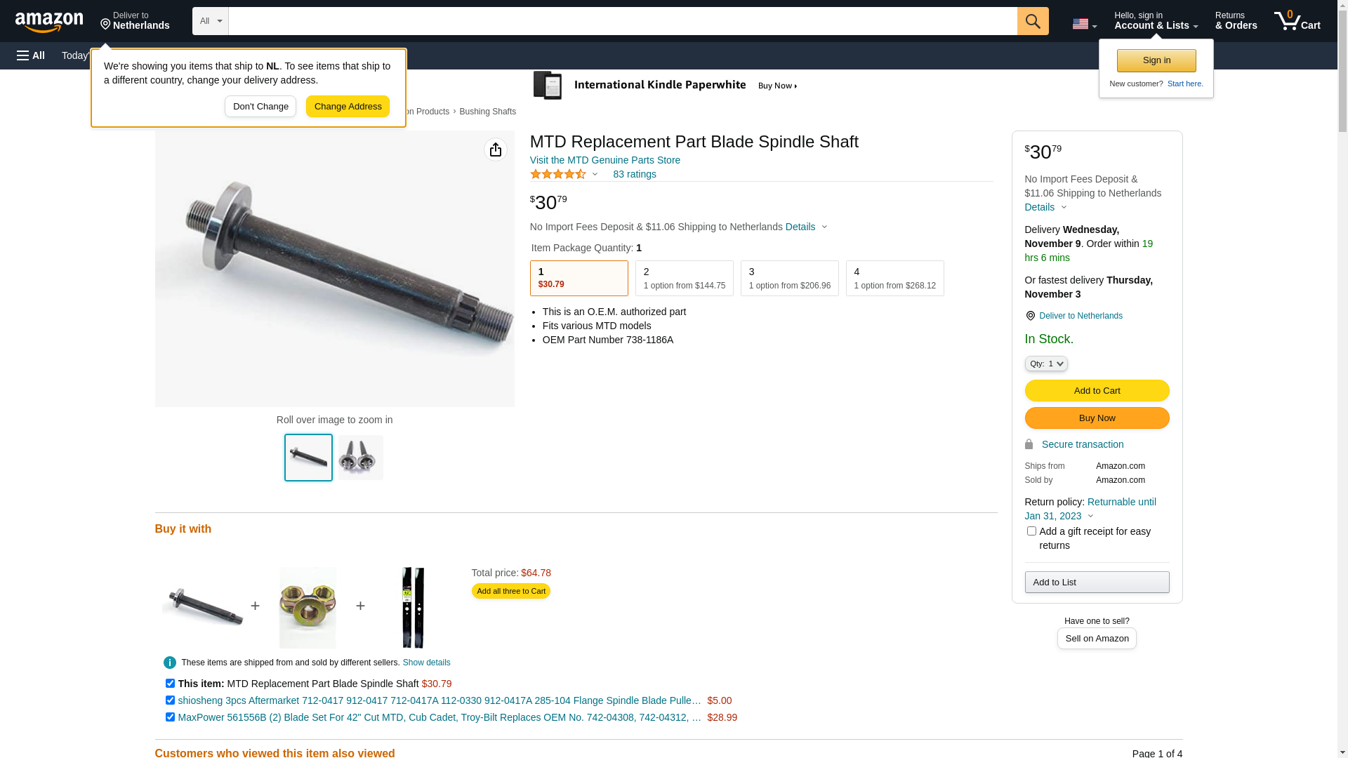 GARDEN WAY 738-1186A 2 Pack Genuine MTD Spindle Shaft For Craftsman Troy-Bilt Yard Machines