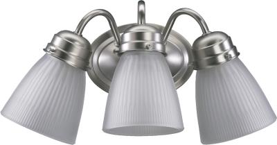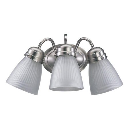 This Three Light Wall Light has a Satin Nickel Finish and Satin Glass. It is Damp Rated.