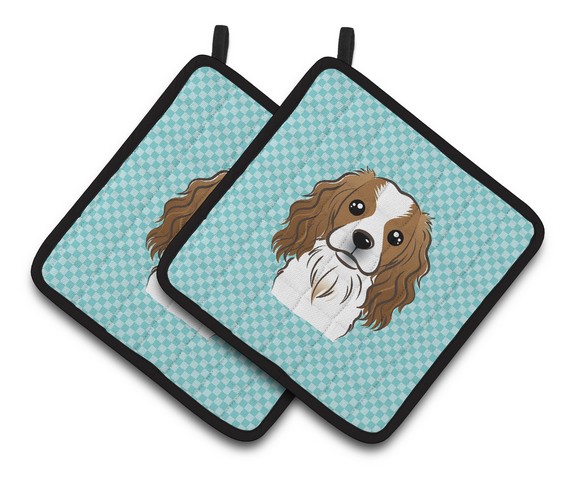 Carolines Treasures BB1162PTHD Checkerboard Blue Cavalier Spaniel Pair of Pot Holders, 7.5 x 3 x 7.5 in.