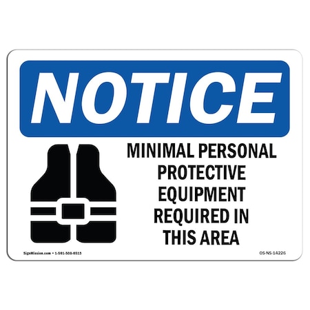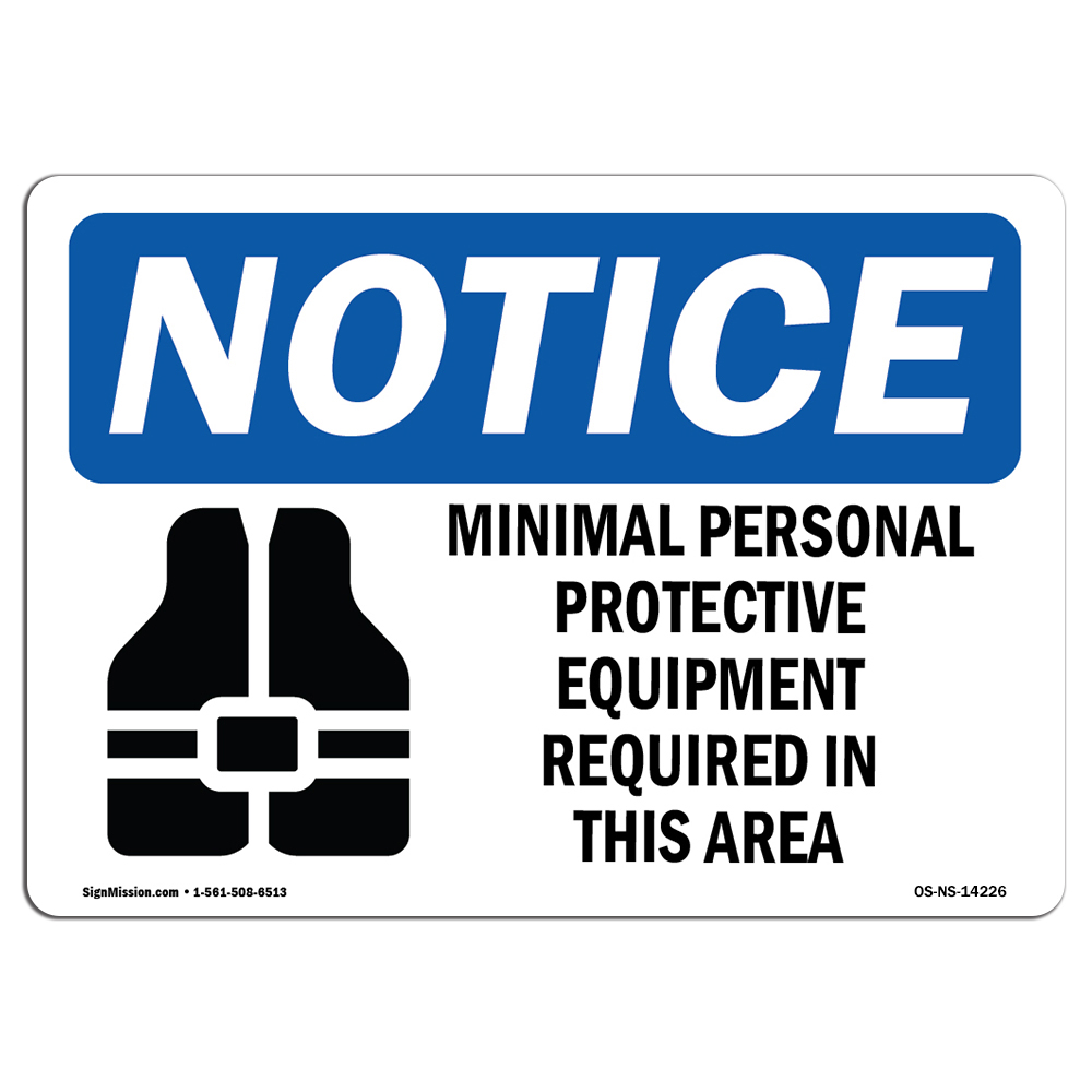 OSHA Notice Sign, Minimal Personal Protective With Symbol, 5in X 3.5in Decal