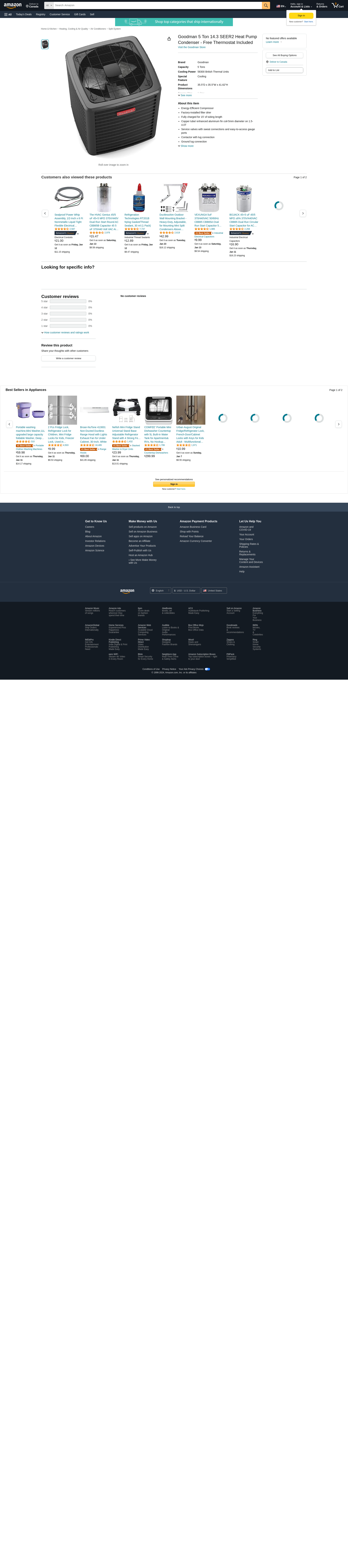 Goodman 5 Ton 14.3 SEER2 Heat Pump Condenser - Free Thermostat Included