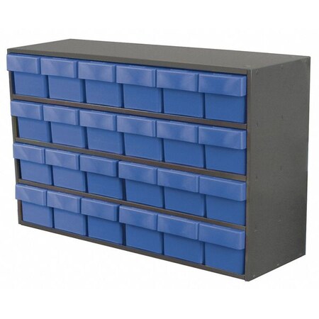 Akro-Mils AD3511C62BLU Stackable Cabinet with 24 Drawers, Gray/Blue, 35" x 11" x22"