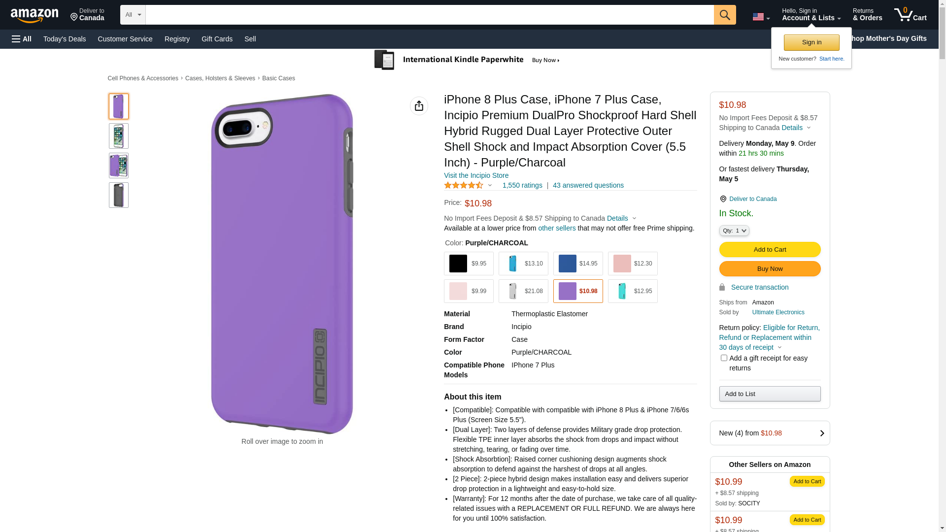iPhone 8 Plus Case, iPhone 7 Plus Case, Incipio Premium DualPro Shockproof Hard Shell Hybrid Rugged Dual Layer Protective Outer Shell Shock and Impact Absorption Cover (5.5 Inch) - Purple/Charcoal