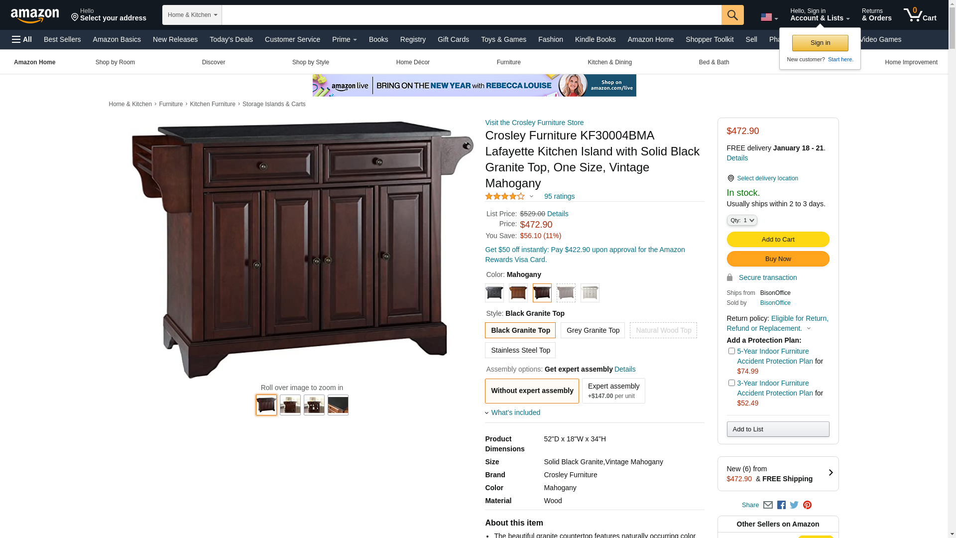 CROSLEY KF30004BMA LAFAYETTE 51 1/2 INCH TRANSITIONAL DESIGN GRANITE TOP FULL SIZE KITCHEN ISLAND OR CART, MAHOGANY