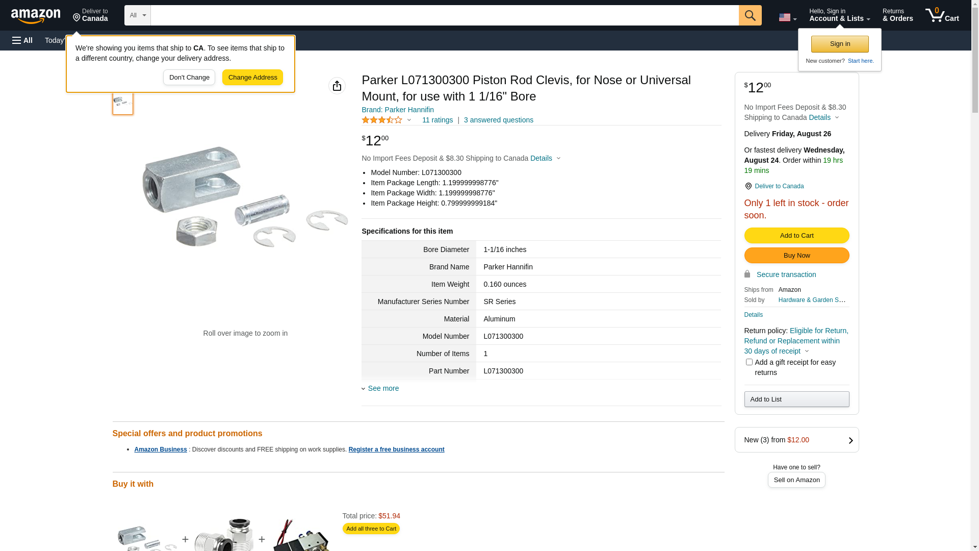 Parker L071300300 Piston Rod Clevis, for Nose or Universal Mount, for use with 1 1/16" Bore