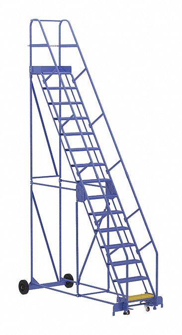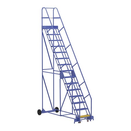 Vestil LAD-15-14-P Warehouse Ladder, 58 Degree, Perforated, 15 Step, 14", Blue