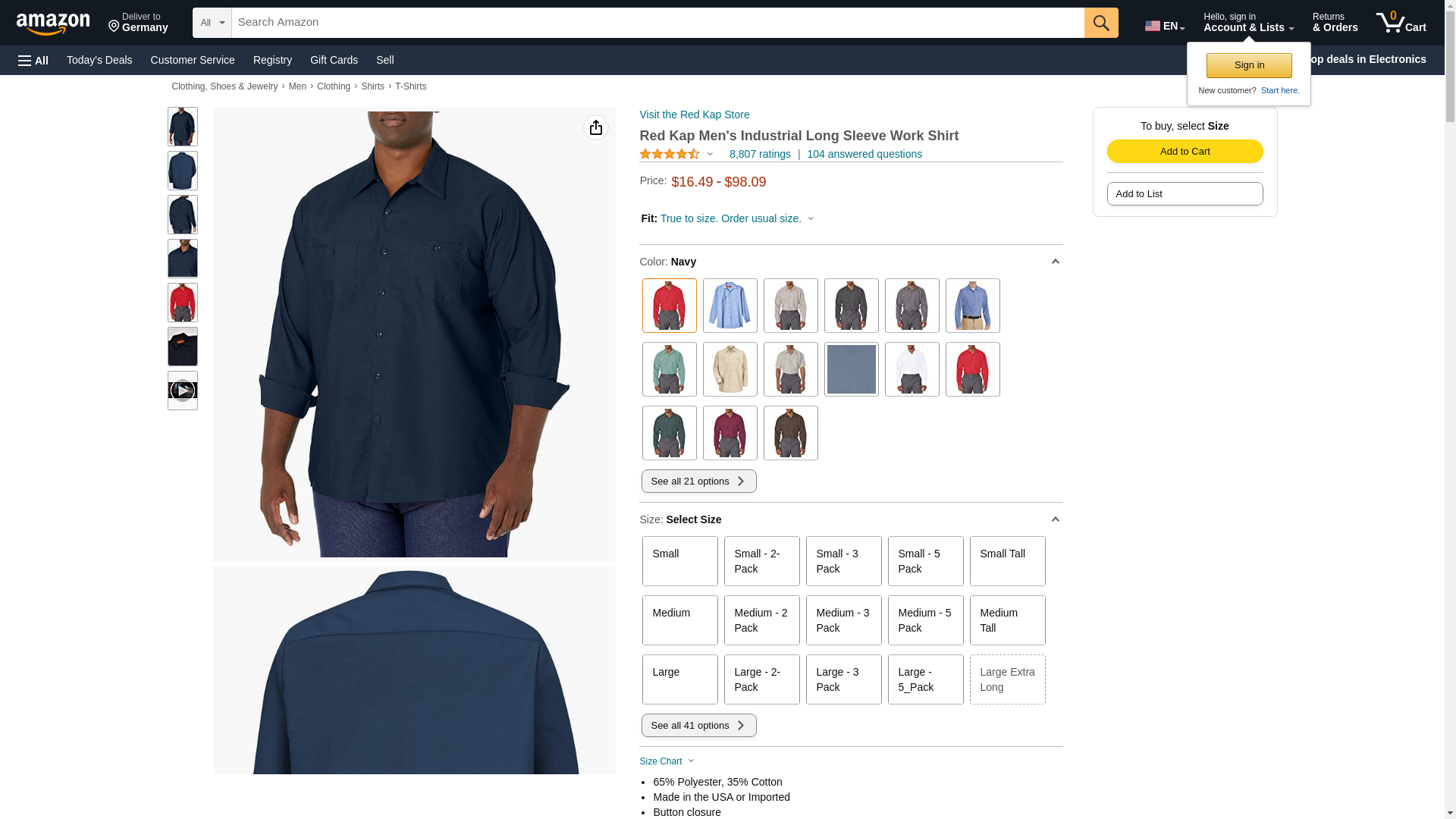 | Manufacturer | "Red Kap Men's Apparel" |